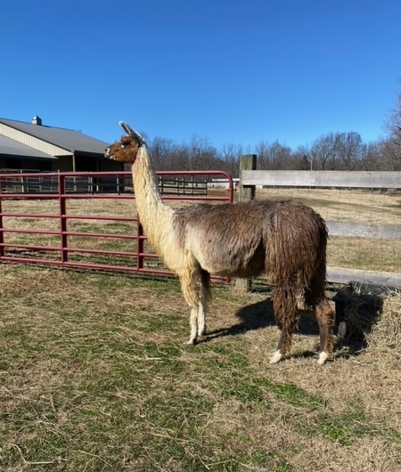 Santa Faye has the grace and stretch that we intend to focus on in our breeding program. We are very grateful to be entrusted with her from 4L&M llama farm. She came to us bred to Solid Rock’s Sandstone and has since given us a beautiful suri female cria. She is one of the kindest llamas we have every handled. Photo is courtesy of 4L&M farms